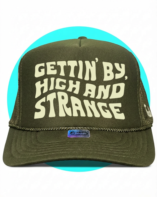 Gettin By Gettin High and Strange Trucker Hat