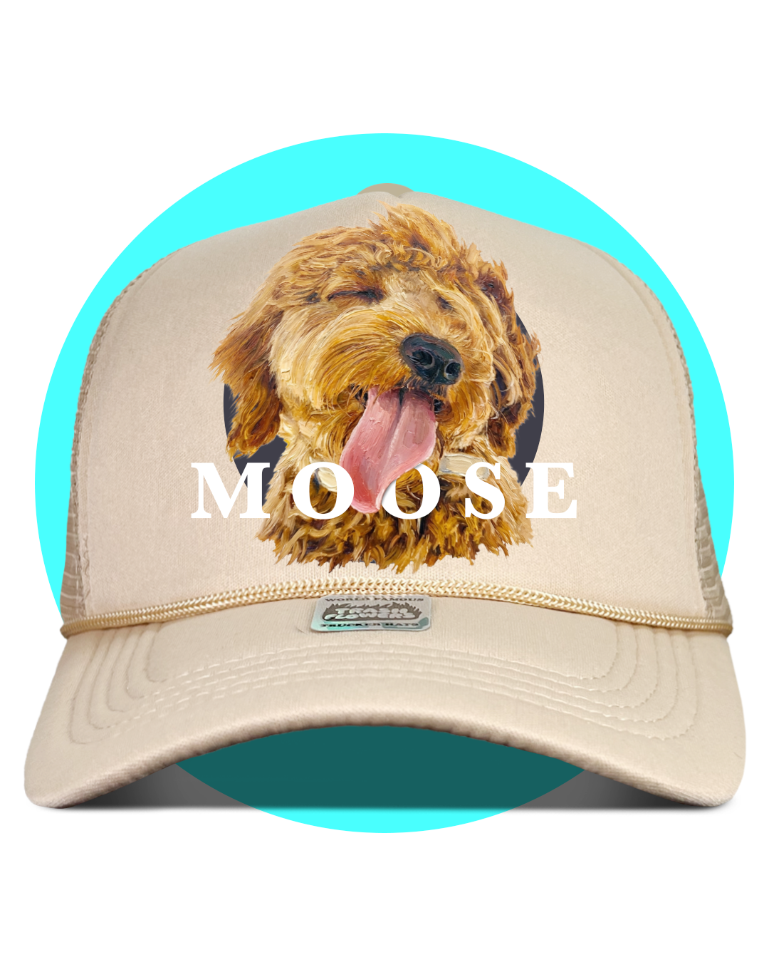 Give the cutest, most personal gift this season — a custom pet portrait trucker hat featuring your dog, cat, or fur baby.