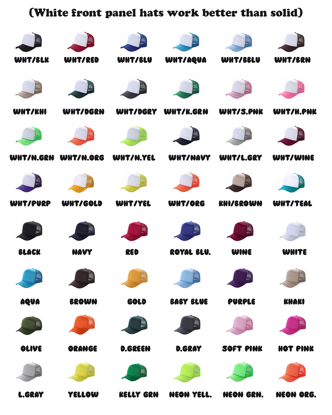 All solid hats have an optional white front panel, which honestly looks the best in my opinion.